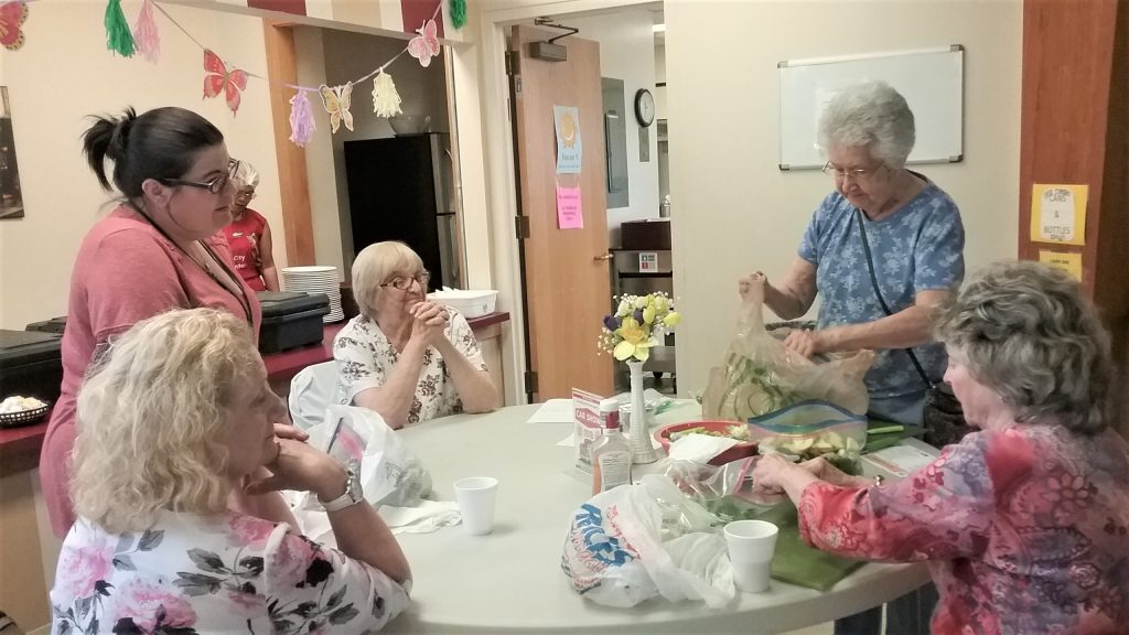 Statistics show that 5.2 million (1 in 15) seniors suffer from food insecurity. Living on a fixed income can limit their ability to purchase fresh, healthy foods and cause them to rely on inexpensive, pre-packaged foods high in sugar, sodium and cholesterol. Also, nearly one-quarter of seniors 65 and older feel lonely. Living alone and having to give up driving can be life-changing and make it difficult to maintain ways to socialize. Isolation and loneliness can lead to many serious health problems, including depression, anxiety, and increased risk of stroke and heart disease. In order to help alleviate food insecurity and social isolation, a new Faith in Action community service was created named Chop & Chat.